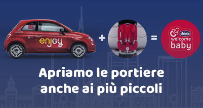 Il progetto si chiama Welcome Baby e ha coinvolto anche Chicco che, insieme ad Enjoy, il servizio di car sharing di Eni, ha installato su cinquanta delle auto rosse che circolano in città, i seggiolini auto Seat Up 012. Un progetto pensato per le famiglie, per garantire viaggi comodi e sicuri anche in città.